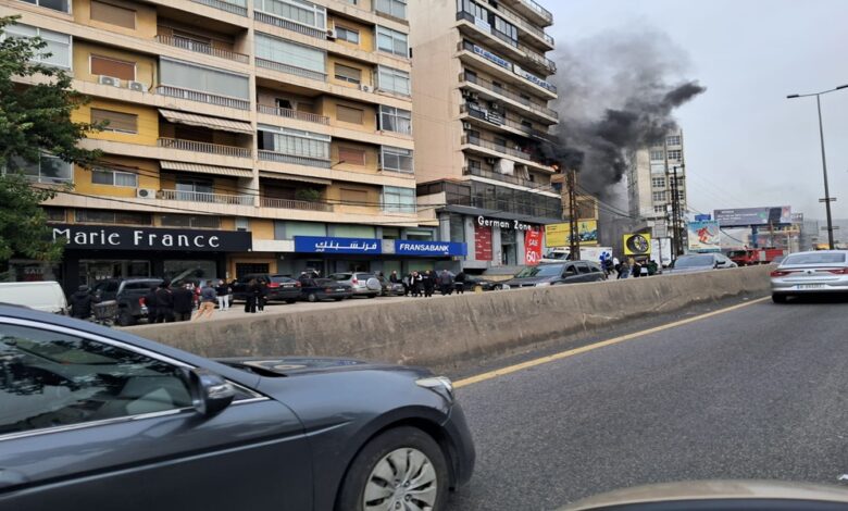 اندلع حريق، الجمعة، في مبنى على أوتوستراد صربا المسلك الغربي مقابل ثكنة صربا، وتعمل فرق الدفاع المدني على إخماده.
